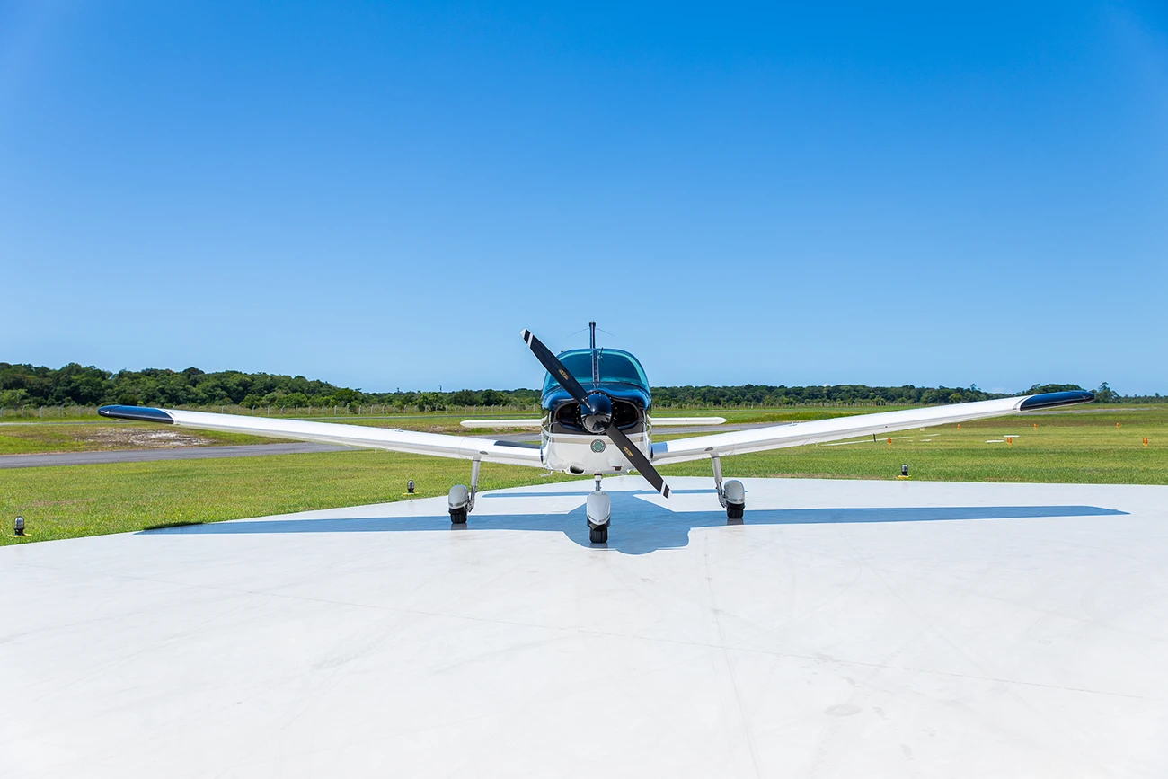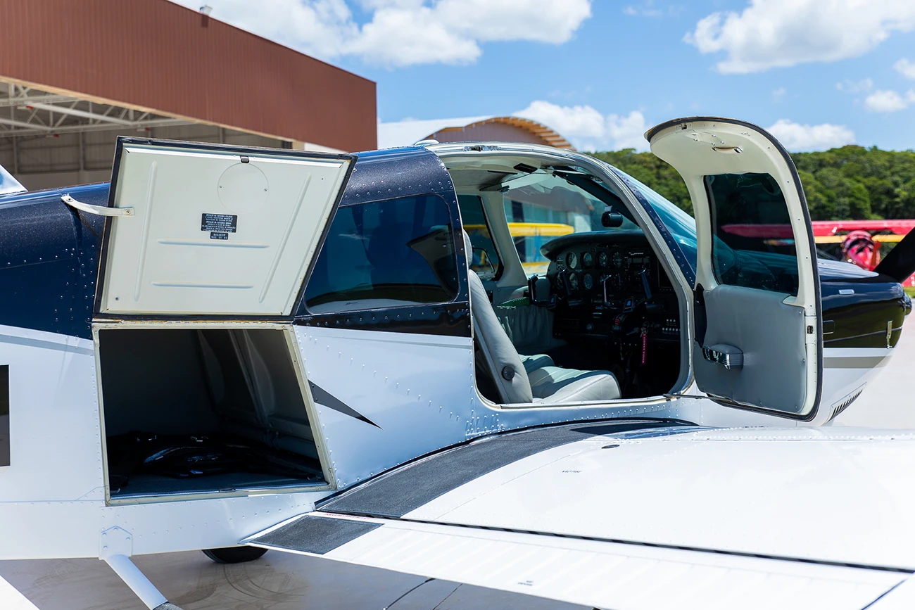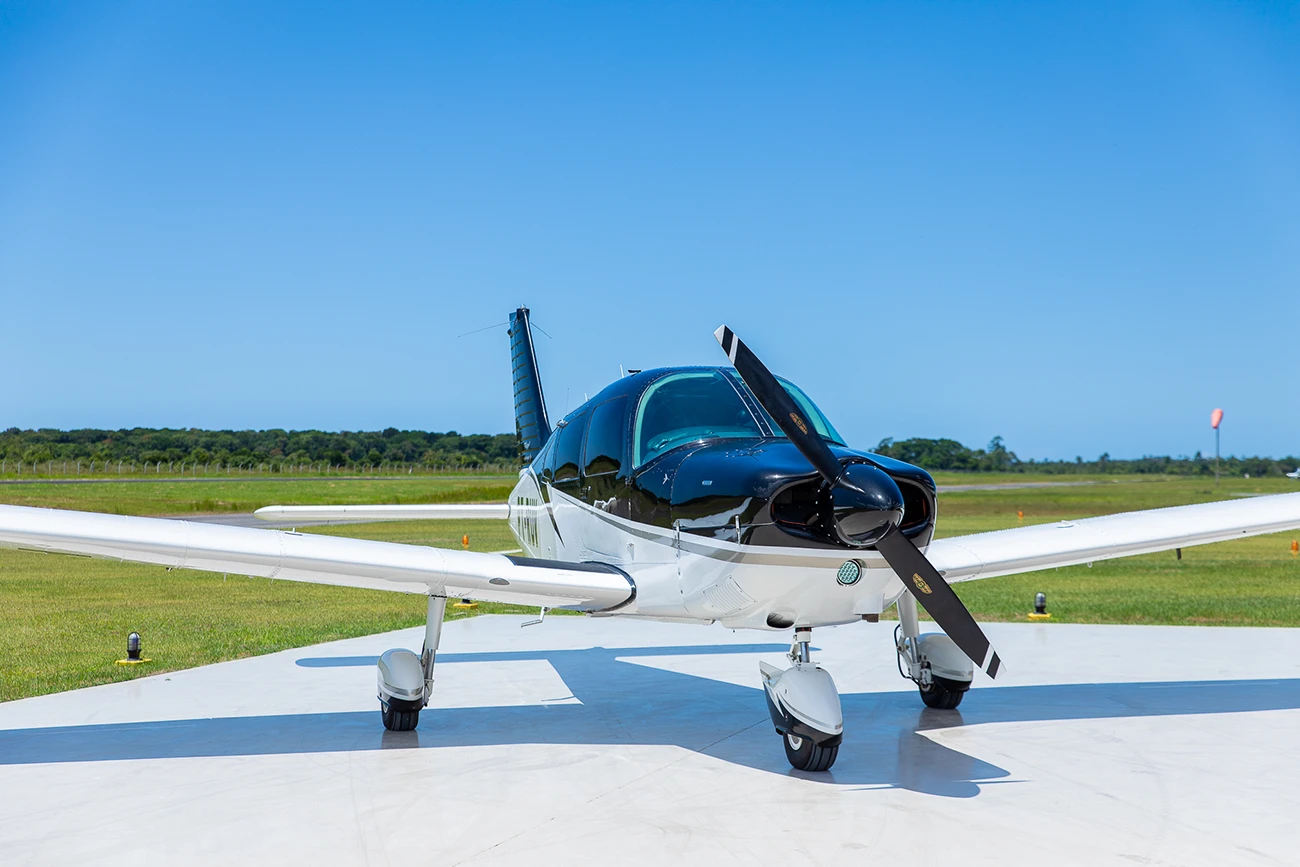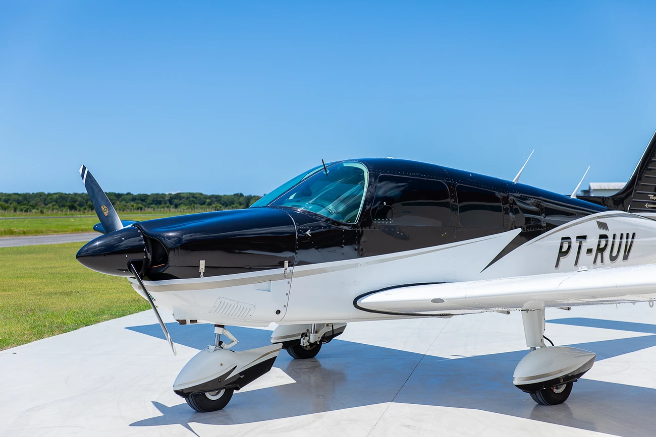 O exemplar do acervo é o Embraer EMB-712 Tupi, matrícula nacional civil PT-RUV, de C/n 712107, construído em Botucatu (SP) pela Indústria Aeronáutica Neiva S/A (subsidiária da Embraer), em 1984, sendo portanto um dos últimos exemplares do modelo produzidos no Brasil. Estranhamente, não constam registros no RAB (Registro Aeronáutico Brasileiro) dos primeiros 12 anos dessa aeronave, mas sabemos que no início de 1996, a mesma pertencia à Horizonte Táxi Aéreo Ltda, que a vendeu em 3 de janeiro daquele ano (com a data da transferência de propriedade registrada no RAB em 23 de fevereiro) para a Bechara Imóveis e Administração Ltda., de Santos (SP). Quase exatos três anos depois, em 8 de fevereiro de 1999, houve novo registro de transferência de propriedade, desta vez para Jacks Grinberg Junior, de Mogi das Cruzes (SP), embora a venda tenha de fato sido feita bem antes, em 19 de setembro de 1997 (ou seja, pouco mais de um ano e meio depois da aeronave ter sido adquirida pela empresa de Santos).