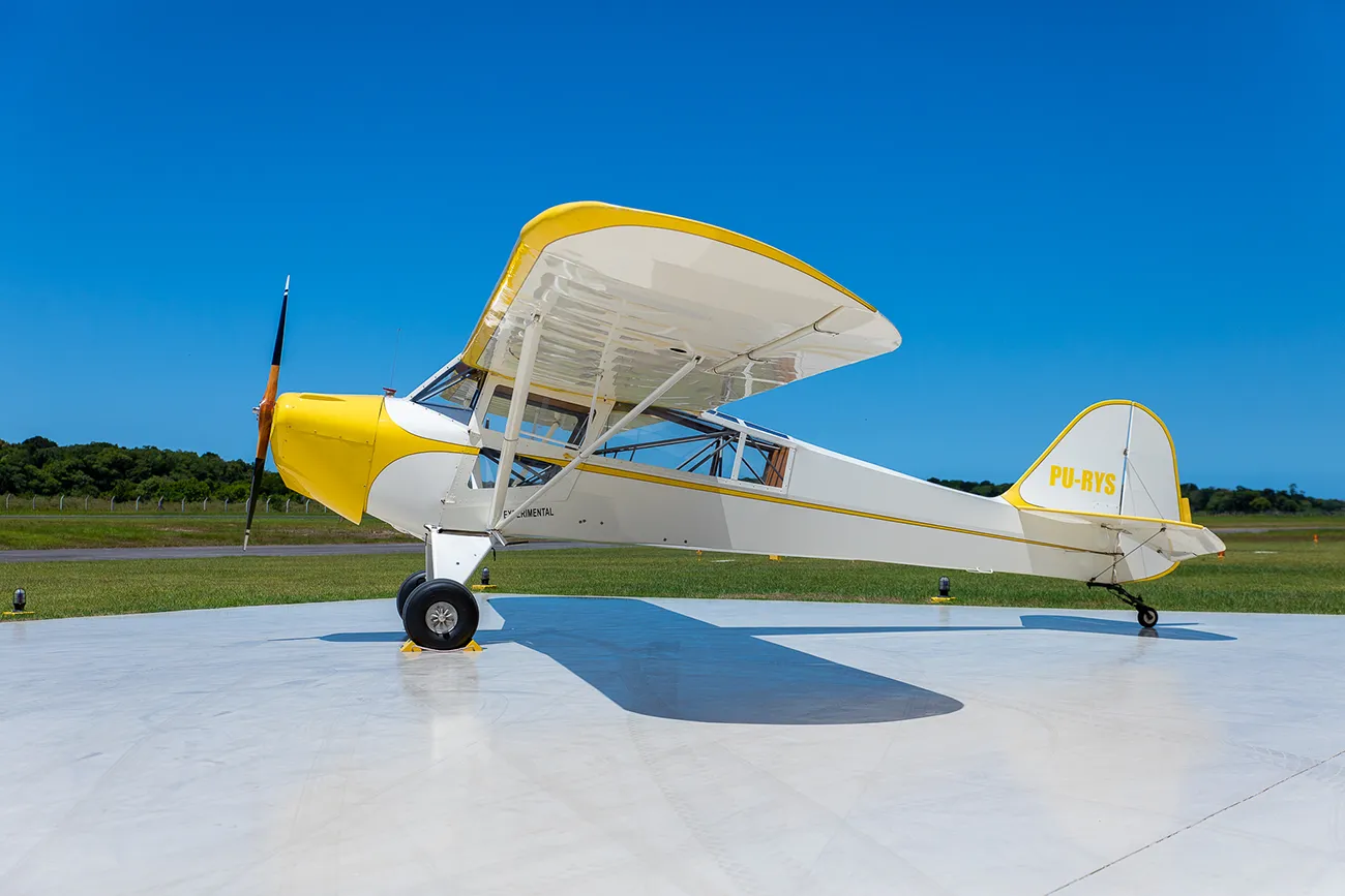 Arquiteto por profissão, Perez desde muito é um apaixonado por aviação e sua história, e nos anos 90, fez parte de uma hoje extinta “confraria” de amantes de aeronaves antigas, que tinha por ninho o chamado Condomínio Aeronáutico Vale Eldorado, em Bragança Paulista (SP), que foi o primeiro de seu tipo a ganhar notoriedade no Brasil, e desde então vem inspirando diversos outros, incluindo o Céu Azul, onde hoje se encontra o Vintage Hangar. Entre os amigos que se reuniam e, no caso de alguns, moravam no Vale Eldorado, estavam o renomado piloto e autor de testes de aviões na imprensa, Fernando de Almeida; o conhecido piloto e artista de aviation-art, Mauro José de Godói Moreira, e o empreendedor e piloto Luís Sérgio Fernandes Franco, entre tantos outros – incluindo, claro, o próprio Perez. E dessas reuniões nasceram duas associações, a ABRARTA (Associação Brasileira de Artistas em Arte Aeroespacial) e a ABAAC (Associação Brasileira de Aeronaves Antigas e Clássicas), sendo que esta última produzia um informativo dirigido aos associados, chamado “O Biplano”. Neste, além das informações da associação, curiosidades da aviação e outros itens, também se publicavam notícias da “descoberta” de aeronaves históricas, geralmente em estado de abandono, pelo Brasil afora – e foi assim que Perez tomou conhecimento do Taylorcraft em Ubá. Infelizmente, hoje, com o falecimento de muitos destes apaixonados “ativistas”, tanto a ABRARTA quanto a ABAAC não são mais ativas.